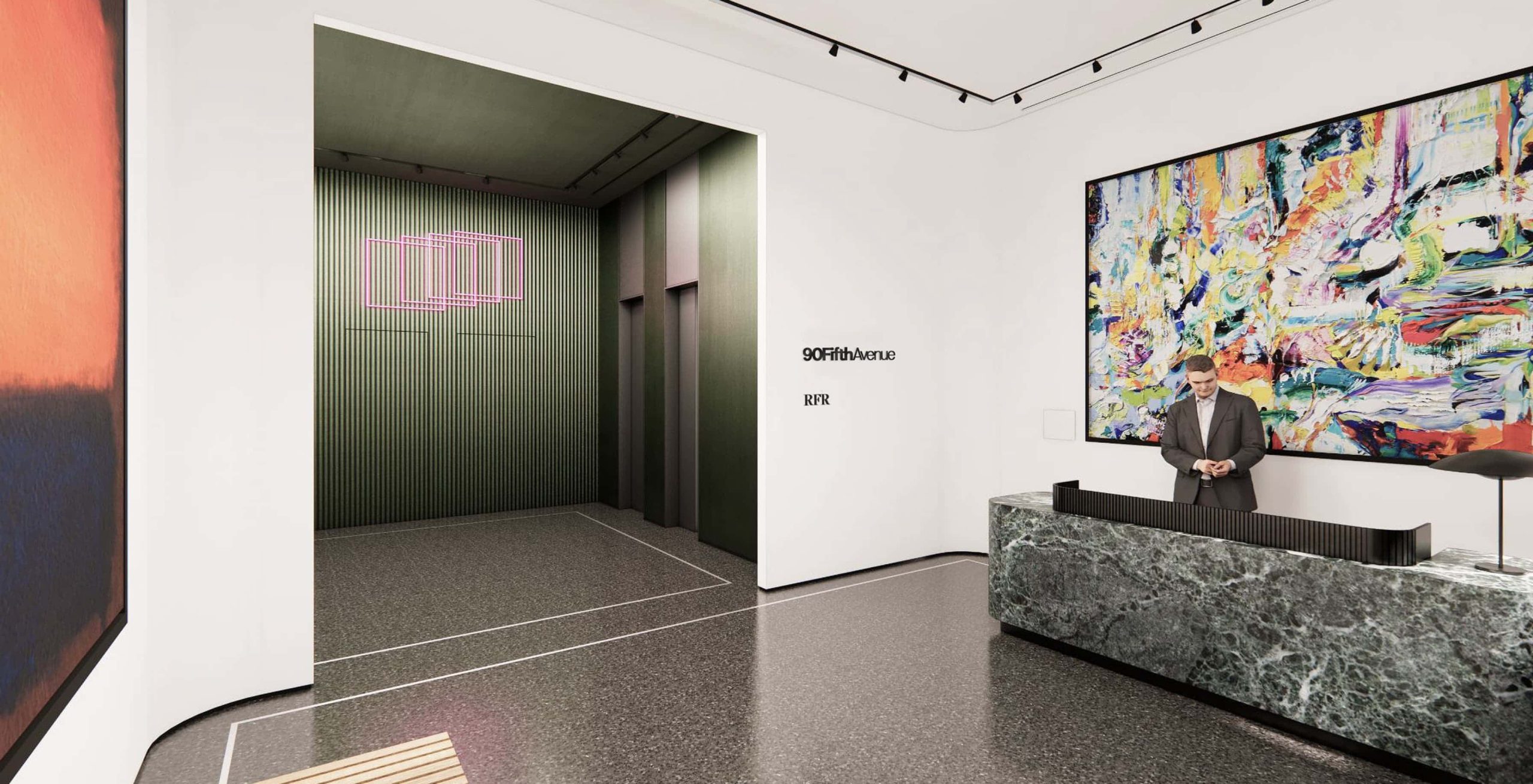 Redesigned lobby and elevators featuring contemporary design and finishes by STUDIOS Architecture — with branding opportunities on Fifth Avenue and 14th Street.